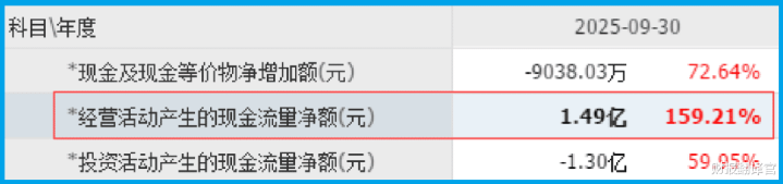 同期“销售商品收到的现金净额”高达1.49亿元,同比暴增159.21%,几乎是报表利润的两倍!